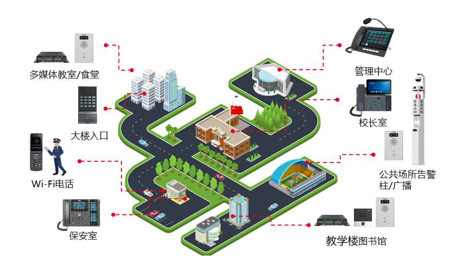 方通讯位针对现代教育场景中的实际需求,塑造了“多功能融合、节省投资、提高效率“的新一代的智慧教育方案,助力教育行业的安全信息化发展。该方案可实现分区听力考试、音乐铃声、广播通知、一键急呼、出入控制等功能,对师生的各类报警求助状况提供快捷有效的服务,保障生命财产安全。