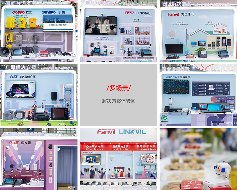 以“简单·融合·高效-共建数智安防新生态”为主题,重磅展示桌面通信终端、云办公终端、楼宇医护对讲、安防广播对讲四大产品线,智慧养老、智慧广播、办公会议、酒店、园区、管廊、电梯&停车场、调度平台等九大应用场景,吸引了众多观众驻足,沉浸式体验。