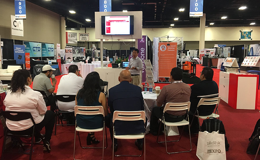 2017年2月8日-10日,美国佛罗里达,方位再次亮相一年一度的2017 ITEXPO展会,ITEXPO是VoIP产品的世界性聚会,聚集诸多行业厂家参与盛会;方位作为一家专业的VOIP厂商,携带了最新X系列彩屏话机、 i系列门禁对讲、 H系列酒店话机、C系列Android话机以及ATA网关作为展示,方位通过专业的展台,专业的产品和专业的销售团队展示了公司的领先实力。 同时,2月9号,方位也参加了合作伙伴Sotel主办的Showcase活动。方位在活动上向大家展示了方位的产品,并分享了方位的产品理念和行业前景,参与活动的人员对方位的新产品和渠道建设给予了高度的期望与肯定。方位此次参加美国展会,也充分利用本次参展机会,与前来参观的客户进行交流、沟通、洽谈、进一步提升了公司品牌的知名度和影响力,同时也进一步了解当地市场对于产品的需求特点。通过此次展会及宣传活动,有助于方位在美国市场的长期发展,公司此行收获颇丰,我们将继续努力,让更多人了解我们的品牌及产品特性,期待与更多的合作伙伴一起前行! 我们再次真诚地感谢所有客户持续的支持和信任,你们的支持是方位长久以来前进的动力!2017年, 我们将努力为大家提供更好的产品和服务!期待与您的下次再见!